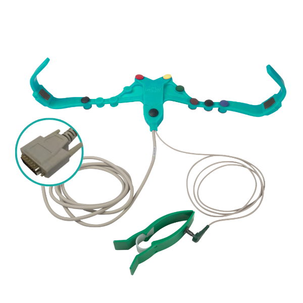 Ceinture ECG LevMed® avec connecteur dédié sans vis pour examens de repos 12 dérivations. Connexion rapide clip-on aux câbles patients spécifiques de votre électrocardiographe. 6 électrodes précordiales intégrées, taille unique élastique unisexe. Comprend 1 pince membre. Disponible avec anses ou sangles de maintien.