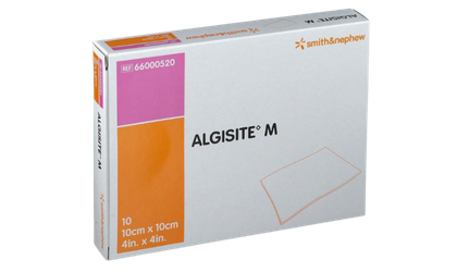 Les pansements alginate de calcium Algisite M™ de Smith & Nephew® sont disponibles en formats 10 cm x 10 cm et 15 cm x 20 cm, en conditionnement de 10 unités. Conçus pour les plaies hautement exsudatives, ils absorbent les exsudats en formant un gel doux favorisant un environnement de cicatrisation humide optimal.