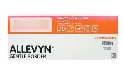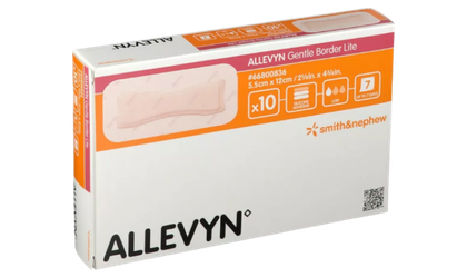Gamme de pansements hydrocellulaires ALLEVYN™ Gentle Border de Smith & Nephew®, disponibles en multiples formats dont un format multisite, pour une gestion efficace des exsudats modérés à élevés. Adhérence douce, absorption optimale et protection fiable des plaies chroniques et aiguës.