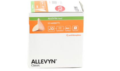 Le pansement hydrocellulaire siliconé Allevyn™ Life pour talon de Smith & Nephew® en format 25 cm x 25,2 cm, conditionné en boîte de 10 unités, est spécialement conçu pour la protection et la cicatrisation des plaies du talon. Sa technologie gel siliconé de dernière génération assure une absorption optimale, une dépose atraumatique et un confort de port exceptionnel.