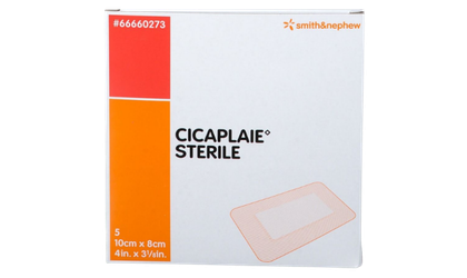Pansement non tissé stérile CICAPLAIE™ de Smith & Nephew®, format 10 cm x 8 cm, conditionné en boîte de 5 unités. Doux et conformable, il assure une protection efficace des plaies aiguës et post-opératoires tout en favorisant un environnement propice à la cicatrisation.